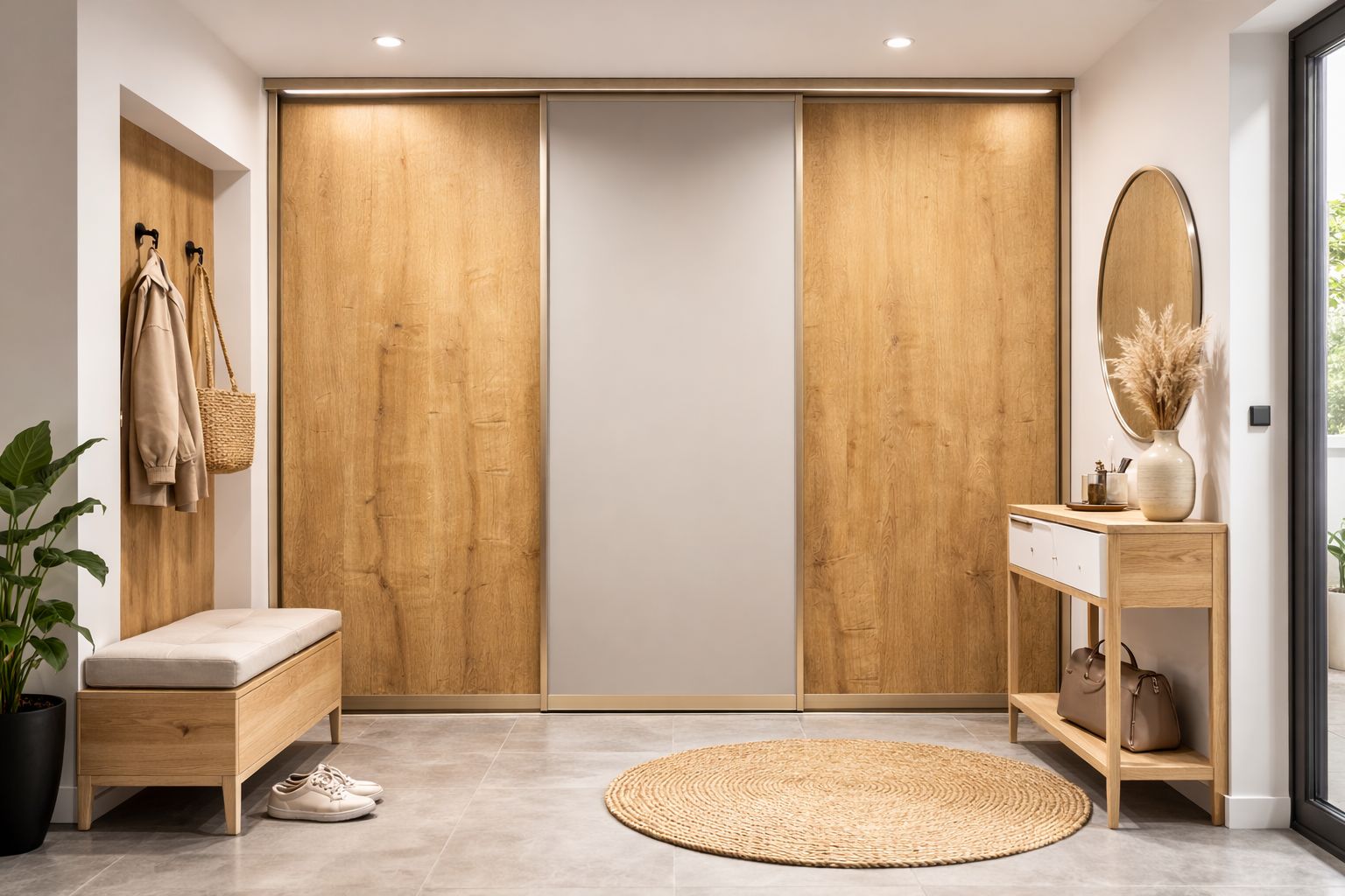 Moderní lamino nabízí širokou škálu dekorů – od realistických imitací dřeva až po jednobarevné nebo betonové povrchy. Díky tomu lze vestavěnou skříň navrhnout tak, aby dokonale zapadla do stylu místnosti.